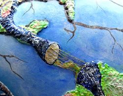 It was so weird when I began to carve out the middle of the tree like spinal cord, it felt like I was operating on the planet, leaving a big scar down it's middle. I could almost feel the pain of the planet from the scar's we have inflicted upon it. When painting the neurons, DNA and synapses across the continents I got a really strong feeling our interconnectivity, the planet seems so small from his perspective and we are so connected within our infastructure, ultrastructure, and our communication devices